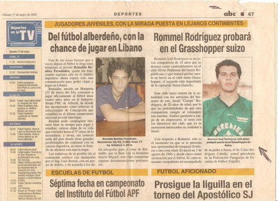 Año 2003: Primera división del Club Silvio Pettirossi, en mayo, viajó a Suiza para probar en un equipo de Primera División el GRASSHOPPER de Zurich