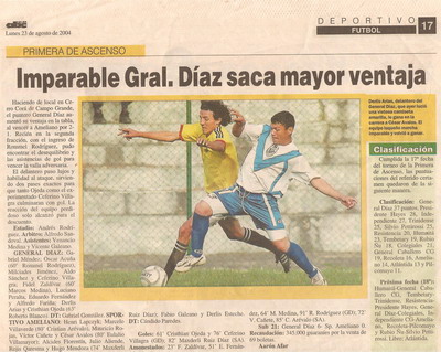 Año 2004: En enero integro la selección de NIKE en un torneo internacional en Flores Da Cunha – Rió Grande Do Sul – Brasil, jugó en la primera del Club General Díaz – primera (B)