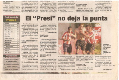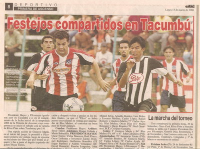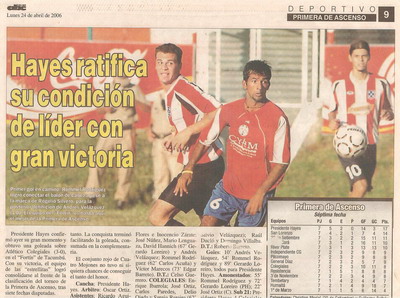 Año 2006: Club Presidente Hayes, primera (B) de Paraguay, campeón con el mismo